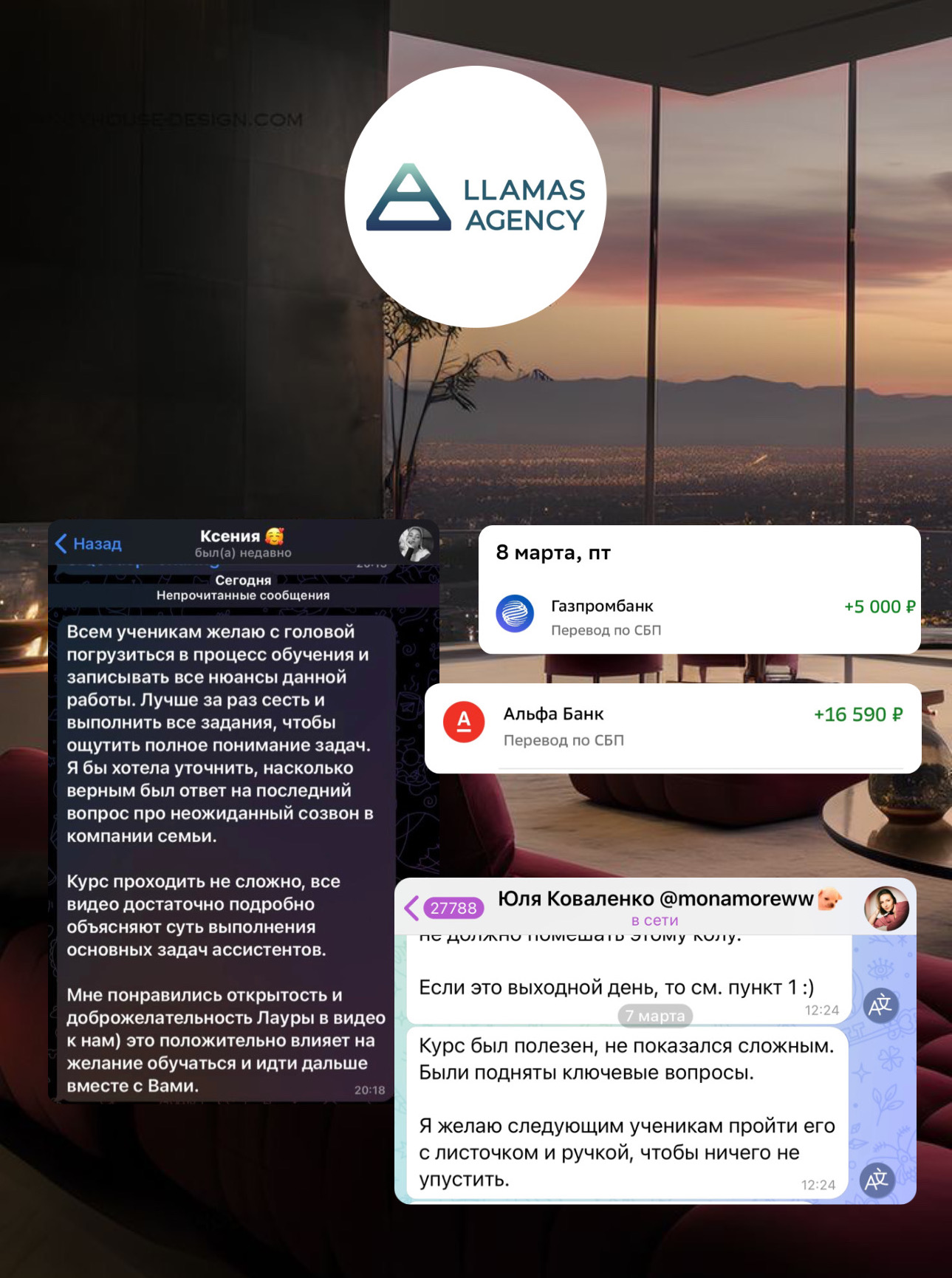 + 6 Модуль "Топ-ассистент": Модуль посвящён лайфхакам, которые помогут тебе приобрети навыки, увенчивающие конкурентоспособность + 7 Модуль "Финансовая грамотность": Он поможет привести твои финансы в порядок и увеличить доход в 2 раза + Доступ к 2 бонус-урокам: "Как найти "своего клиента" и "Сайты для фрилансеров и полезные приложения" + Как выйти на VIP клиентов, которые хотят платить не 20 тыс. , а 80+ тыс.р + Как выйти на клиента, который готов платить в валюте EURO + стикеры для настоящего ассистента + 1 звонок с личной консультацией от реального предпринимателя Лауры Льямас, на котором ты можешь зарекомендовать себя и узнаешь, как именно ты за 5 шагов сможешь вырасти в доходе в ассистентве + тренировка собеседования, укажем на ошибки, поможем пройти его так, чтобы Вас не просто взяли, а просили остаться в компании + помощь и гарантия трудоустройства